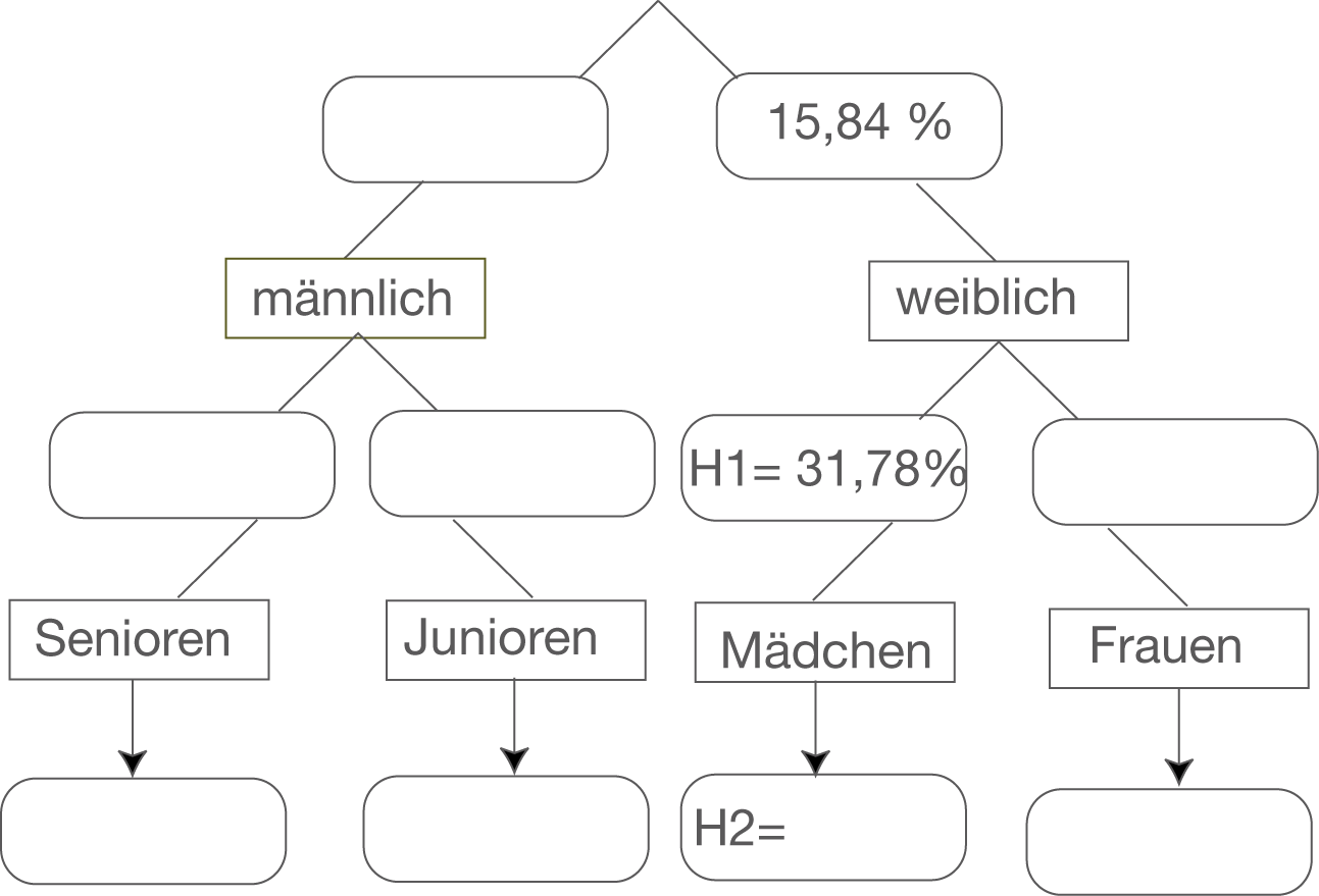 - Stellen Sie die gegebenen Daten in dem folgenden Baumdiagramm dar und notieren Sie alle fehlenden relativen Häufigkeiten.