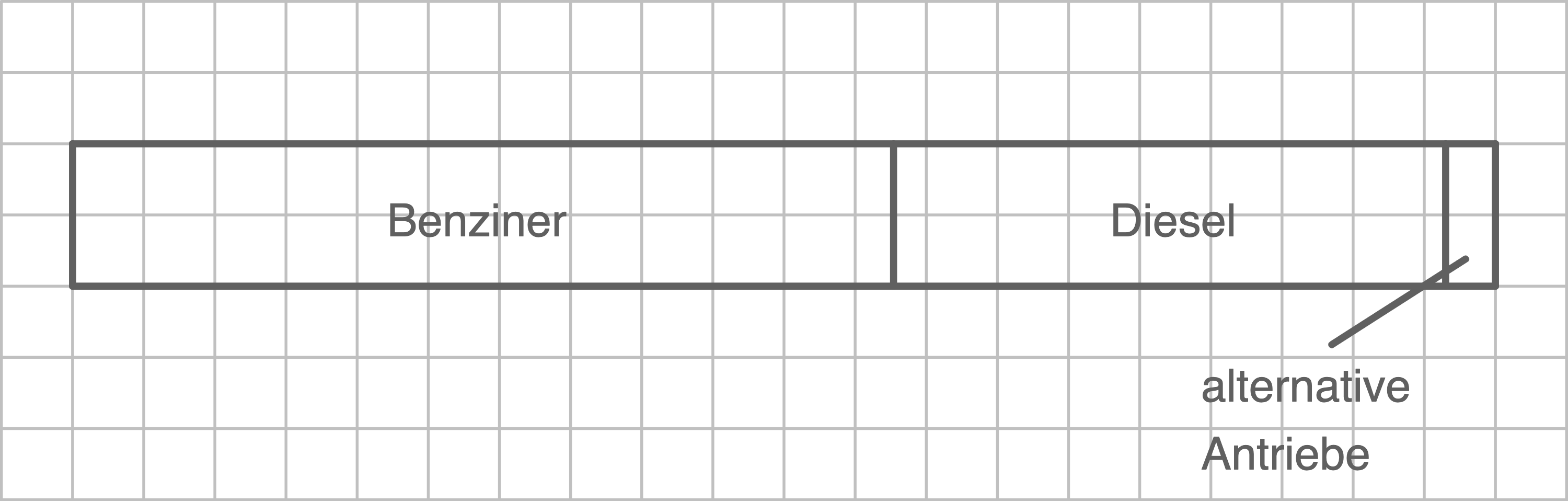 lang gezeichnet werden. Der Anteil der Benziner entspricht dann einer Breite von