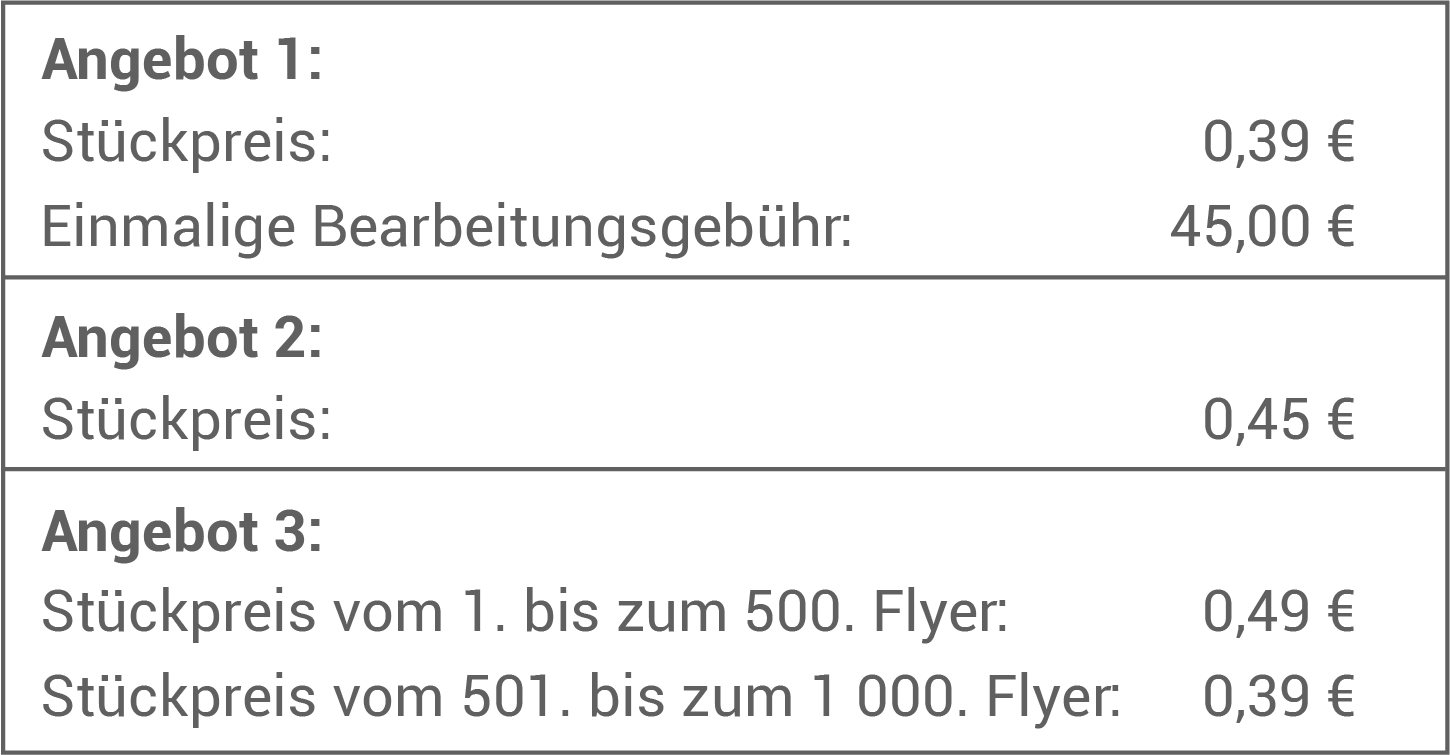 Da Angebot 1 bei 1000 Flyern am günstigsten ist, sollte sich Luisa für dieses Angebot entscheiden.