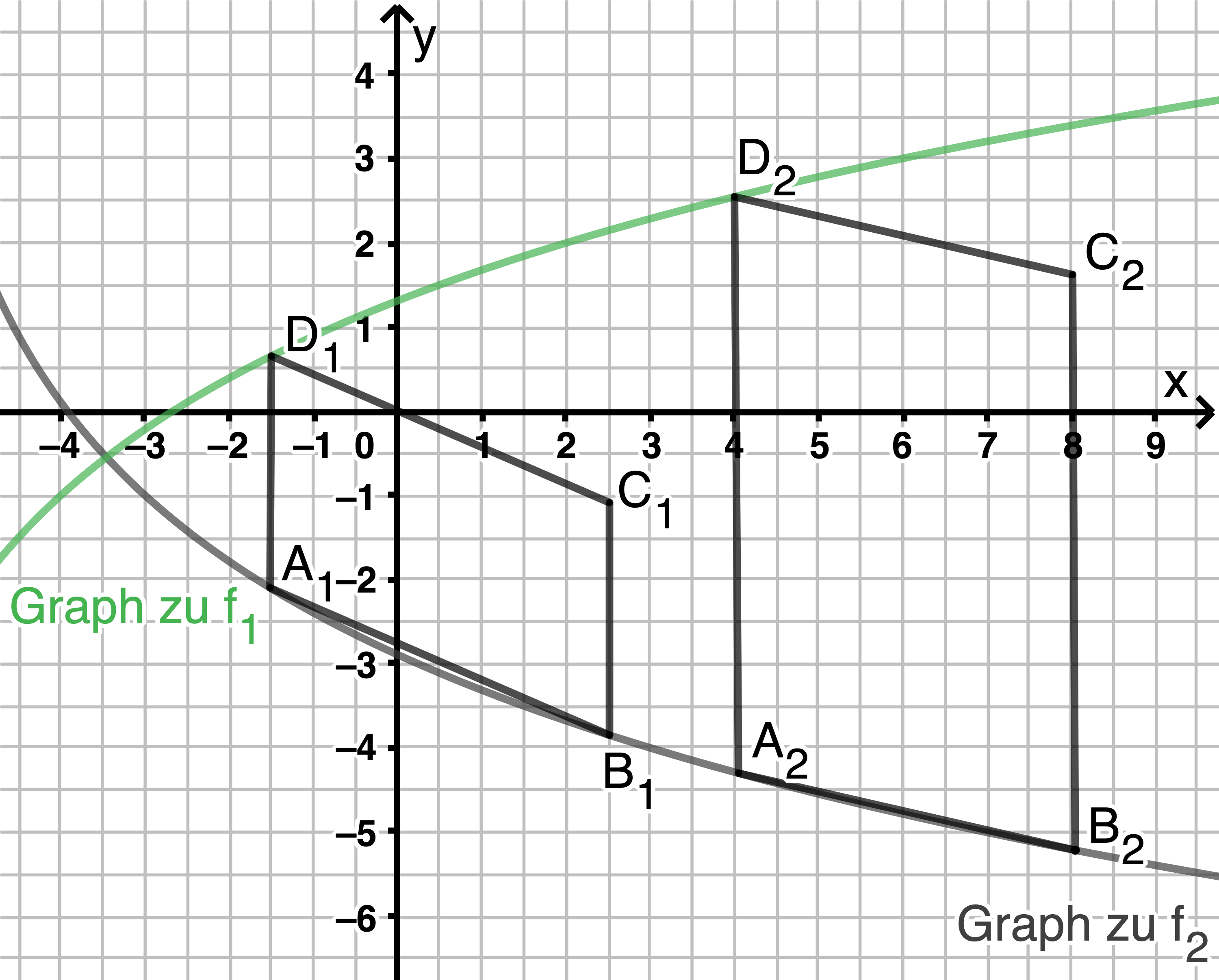 wird durch Achsenspiegelung an der x-Achse und anschließende Parallelverschiebung mit dem Vektor