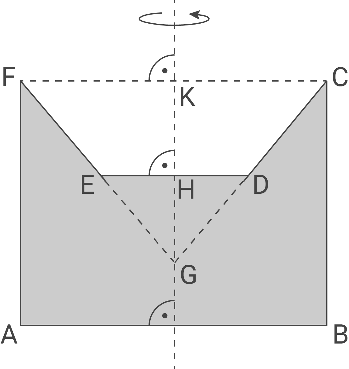 Die nebenstehende Skizze zeigt den Axialschnitt ABCDEF eines Körpers mit der Rotationsachse GK. Der Punkt G ist der Schnittpunkt der Geraden CD und FE.