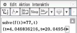 gilt. Mithilfe des solve-Befehls des CAS ergeben sich folgende Lösungen:
