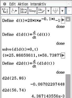 Mit dem notwendigen Kriterium ergeben sich mögliche Extremstellen mithilfe des CAS zu: