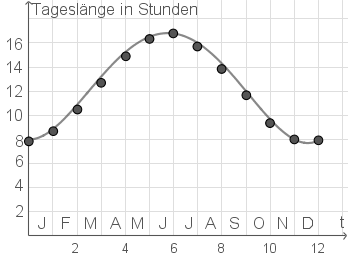 dargestellt, mit der ein Schüler die Tageslängen modelliert hat.