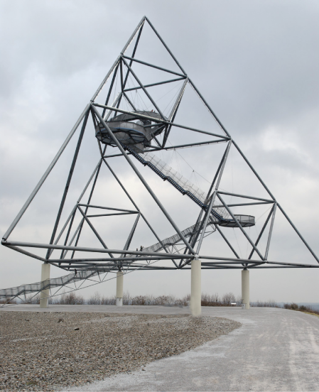Der „Tetraeder“ ist ein begehbarer Aussichtsturm in Bottrop. Die äußeren Kanten des Stahlgerüstes des Tetraeders haben jeweils die Länge von ca.