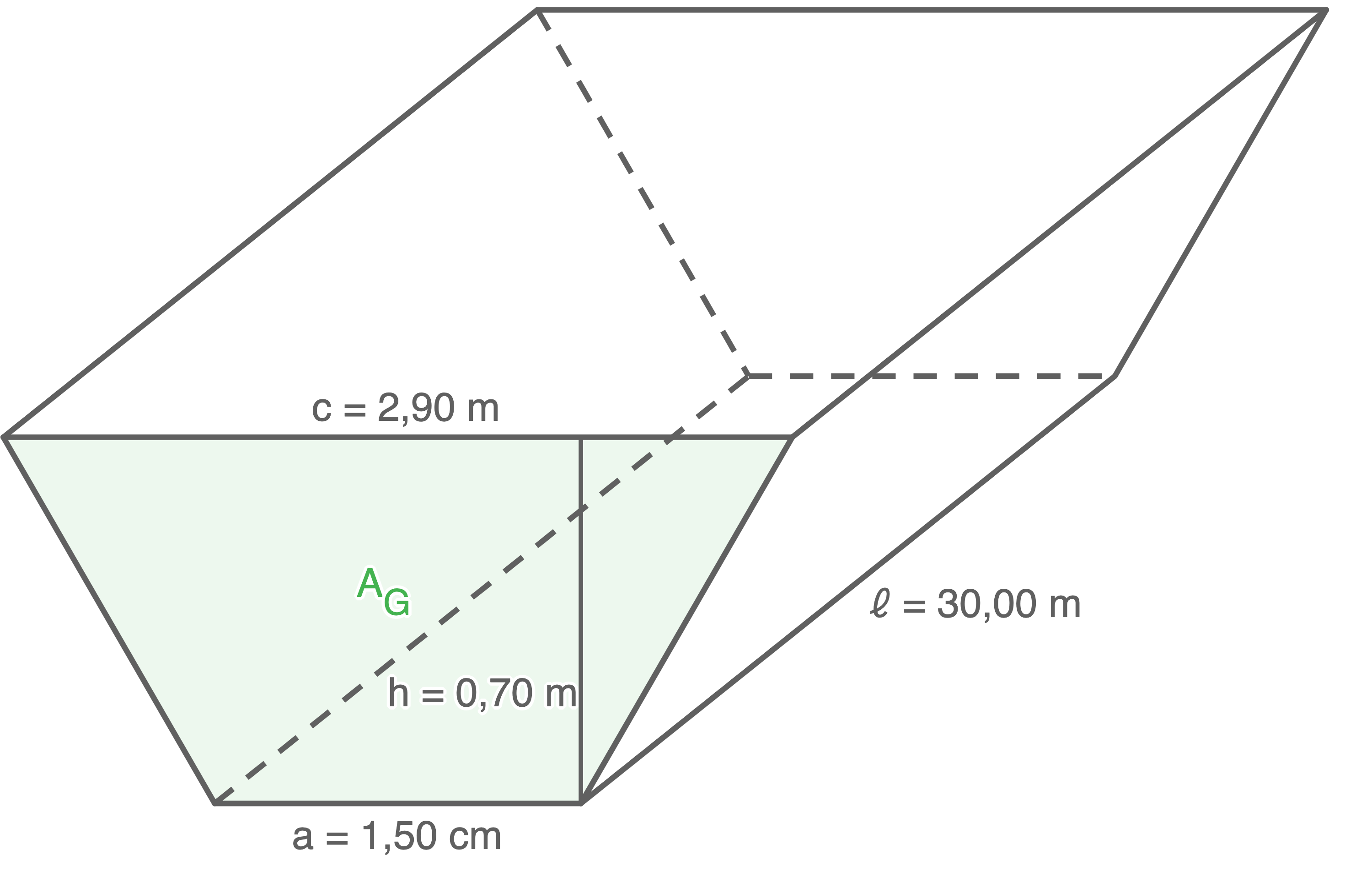 Jeder Graben hat die Form eines Prismas mit trapezförmiger Grundfläche.
