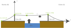 über dem Erdboden. Der Abstand der beiden Pylonen beträgt