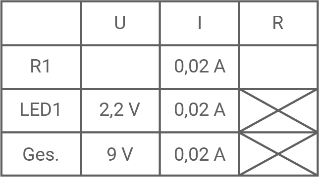 Trage die beiden fehlenden Werte für R1 in der Tabelle ein.