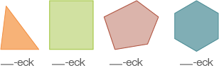 - Ein Fünfeck hat fünf Ecken und fünf Seiten.
